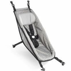 In the comfortable Croozer Baby Seat, your baby can ride with you in a back-friendly, reclining position. Safety first: the sides are extra high, and the Baby Seat is mounted with tension between the frame tubes. The Baby Seat also has its own harness system for fast and easy installation. It comes with a removable head pad for additional support.