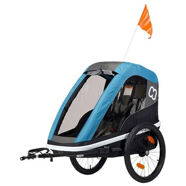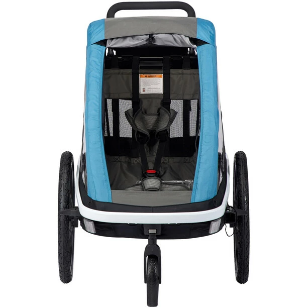 With its lightweight yet strong aluminium frame, the Avenida bicycle trailer offers ultimate protection and riding comfort for your child. The Avenida is more than just a trailer. The multifunctional children’s trailer can easily be transformed into a buggy by removing the bicycle drawbar and safely mounting a buggy wheel.