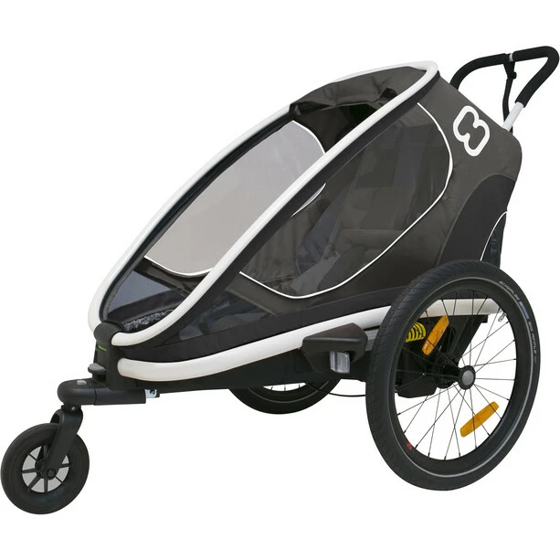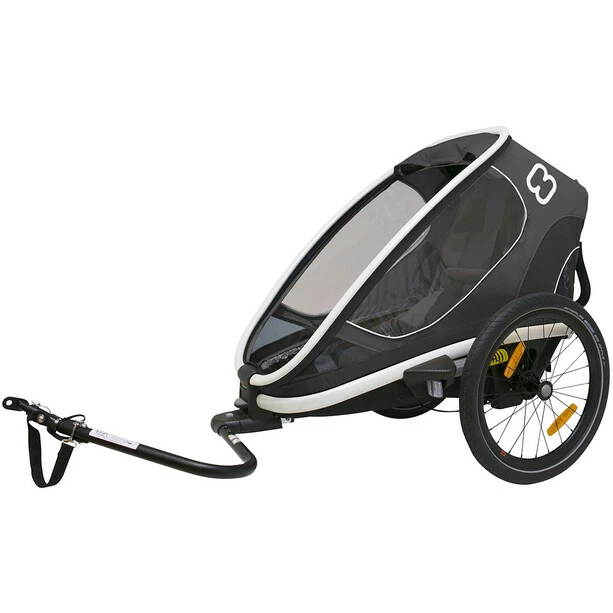 The Hamax Outback ONE bicycle trailer has a comfortable interior and large windows that give the child a good view. The trailer folds and transports easily and is suitable for a wide range of applications in a wide variety of terrain. The adjustable suspension gives the children a smooth and even ride.